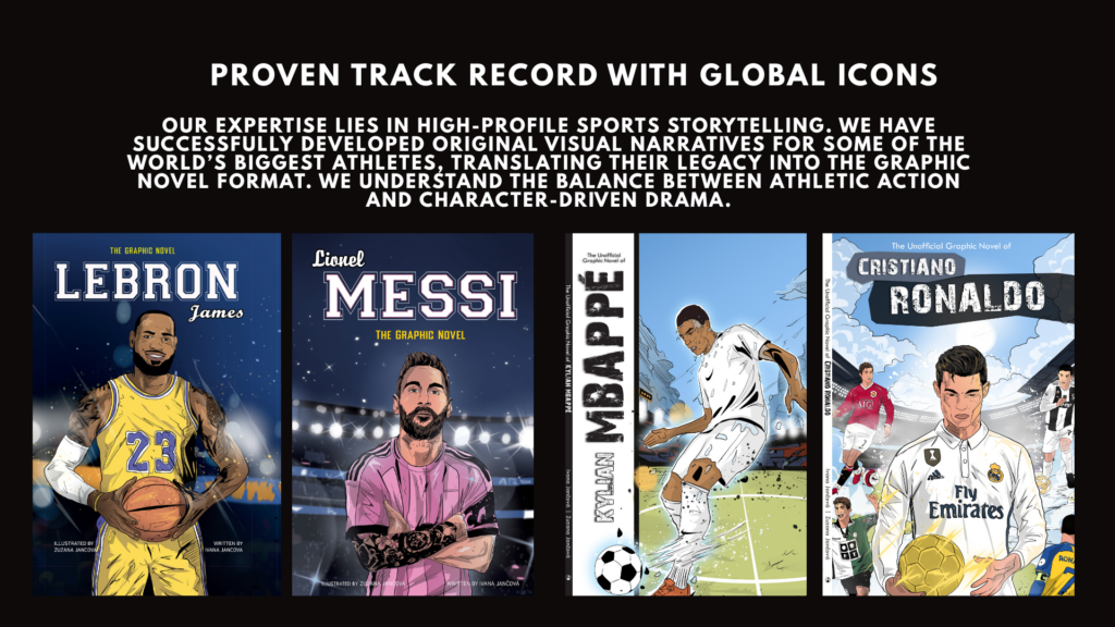 Our journey has taken us from local independent projects to the world stage. We are proud to be the creators behind international graphic novels featuring sports legends like Lionel Messi, LeBron James, and Cristiano Ronaldo. Our work is currently represented by some of the world’s most prestigious retailers: